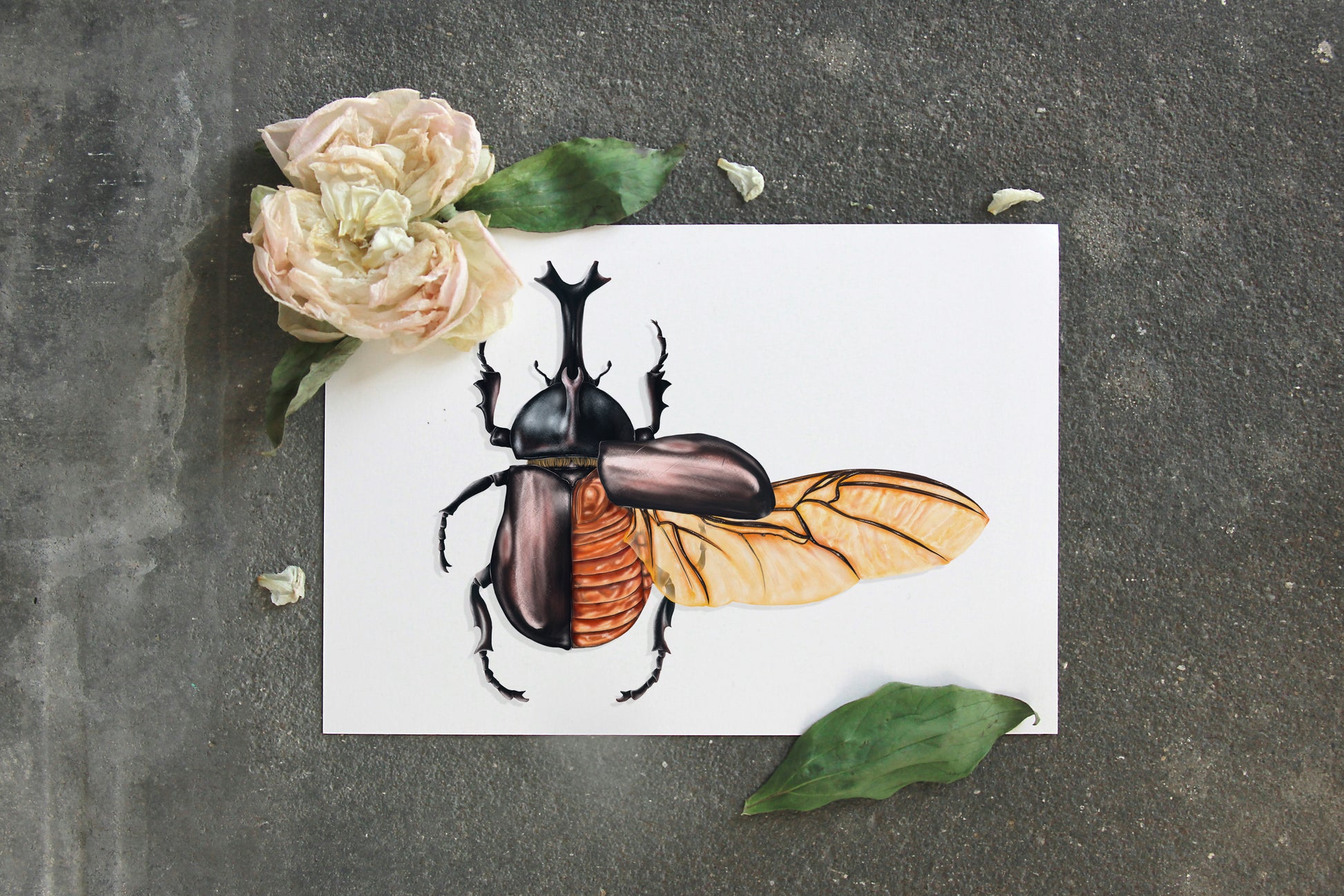 Decora cualquier habitación de tu casa con esta lámina de arte científico de un escarabajo rinoceronte realizada por Fátima Ackerson.