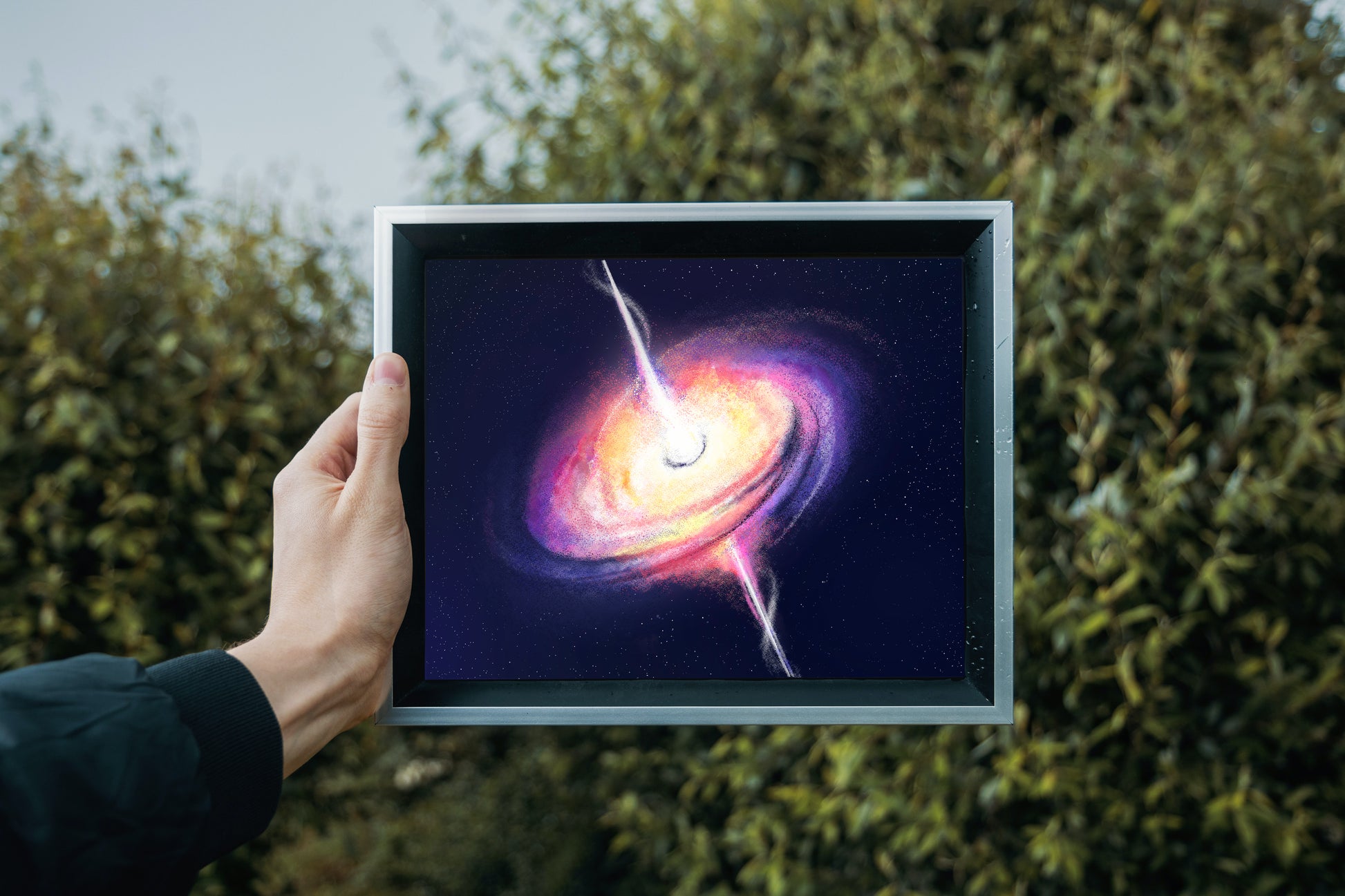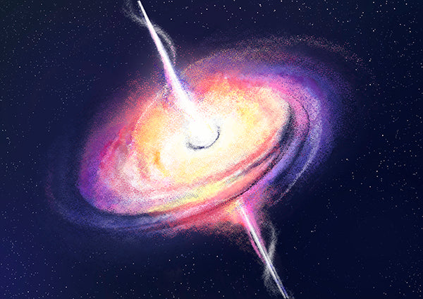 Decora cualquier habitación de tu casa con esta lámina de arte científico de un quasar, realizada por Fátima Ackerson.