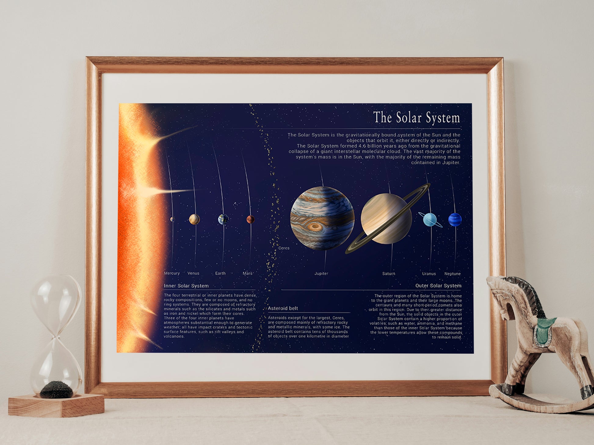 Decora cualquier habitación de tu casa con esta lámina de arte científico del sistema solar, realizada por Fátima Ackerson.