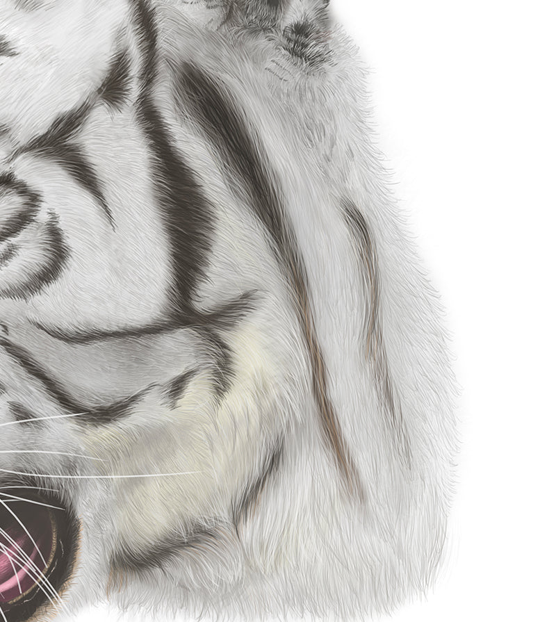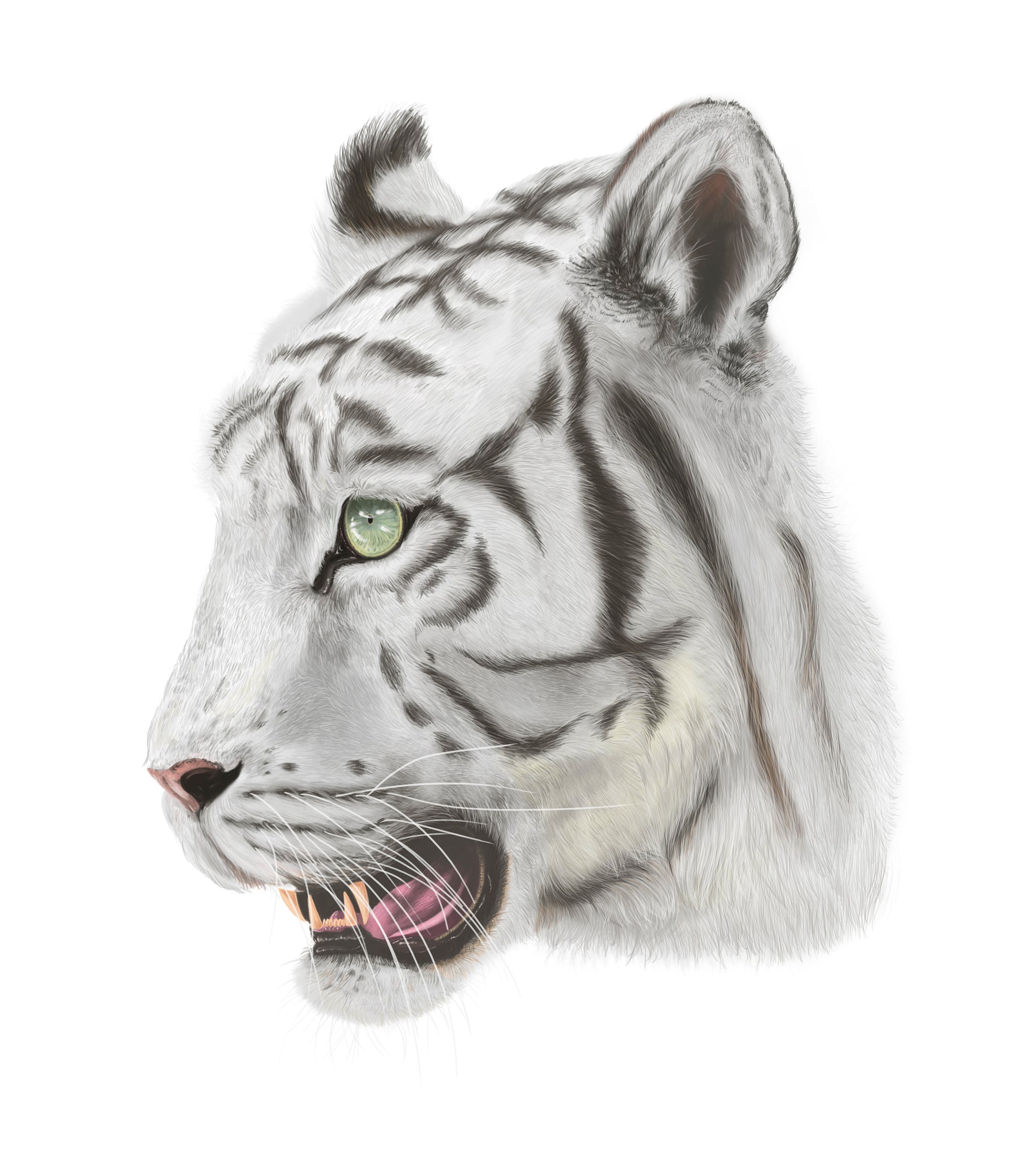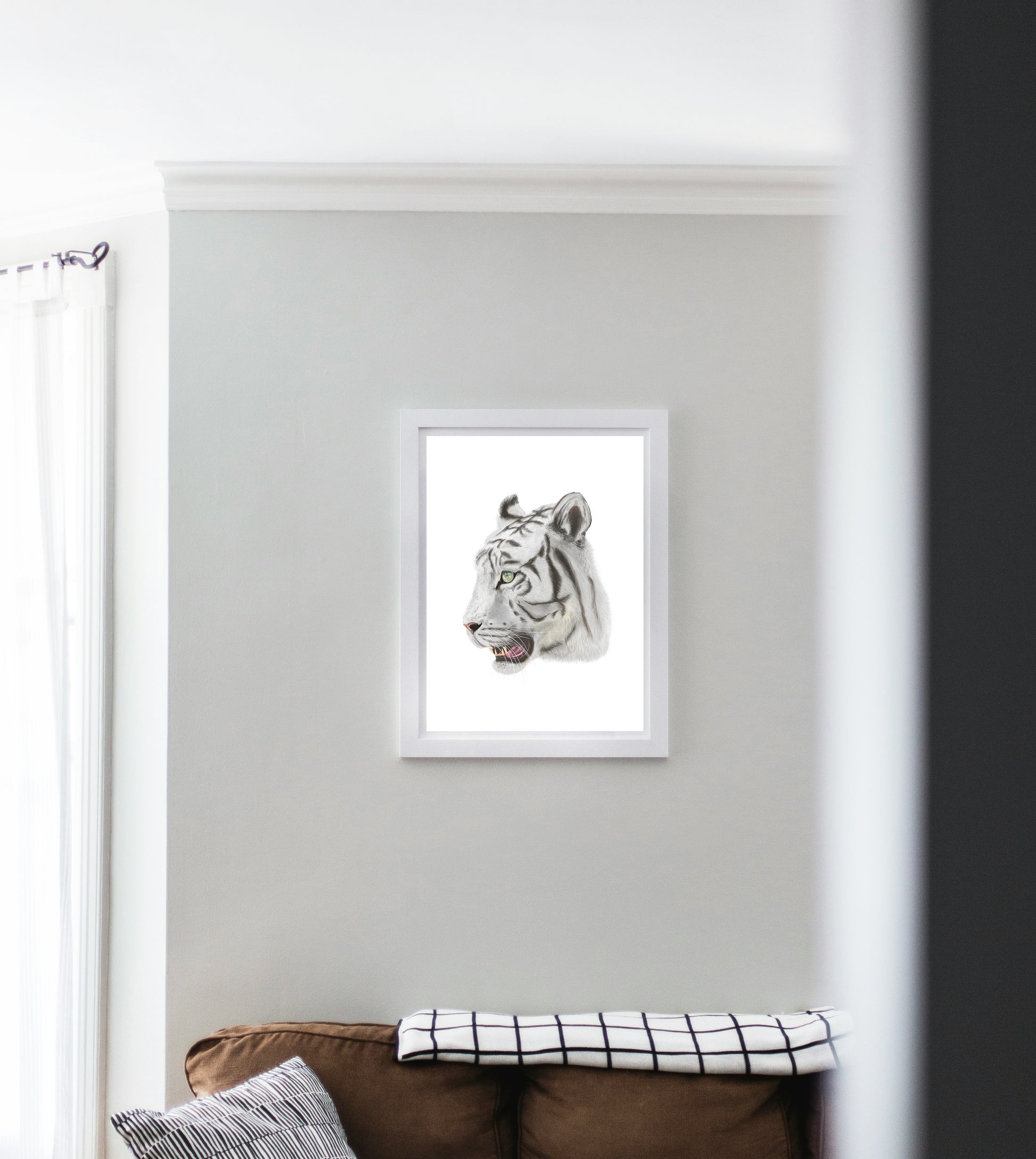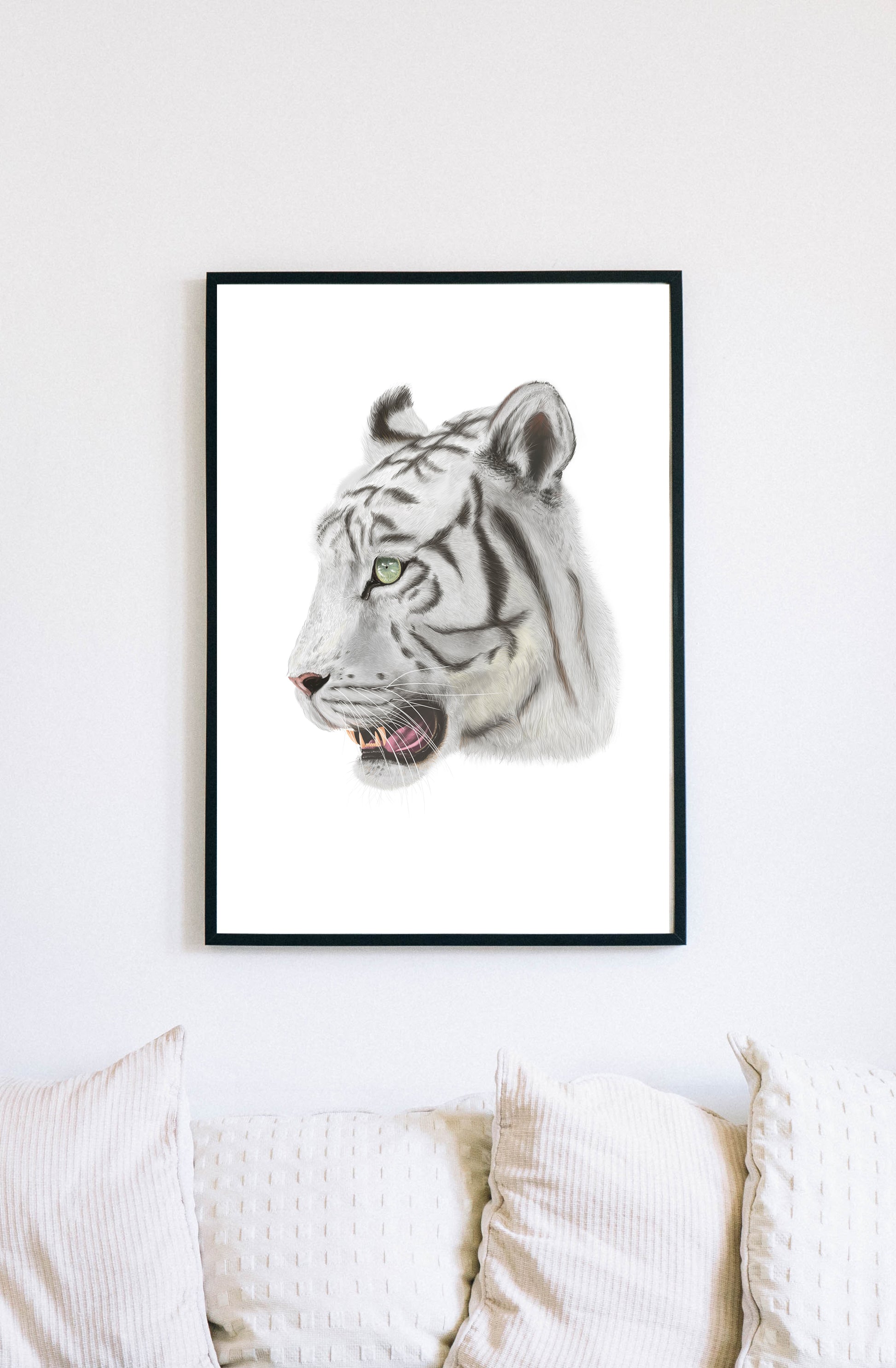 Decora cualquier habitación de tu casa con esta lámina de arte de un tigre blanco realizada por Fátima Ackerson.