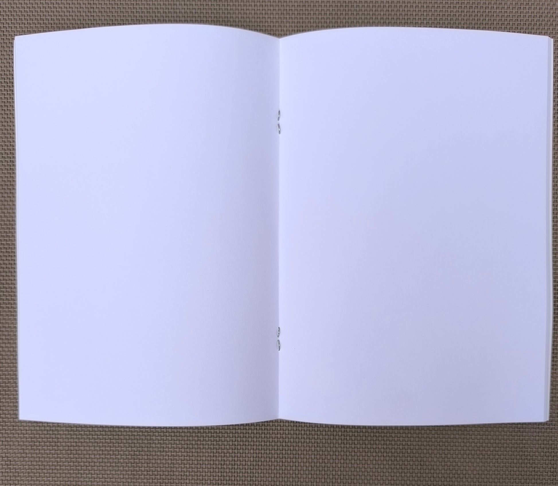 Es tamaño A5 y tiene encuadernación grapada. Es perfecto para tomar notas o dibujar, además la cubierta es blanda para que puedas usarlo como necesites. Las páginas están en blanco, así que puedes utilizarlo como quieras.
