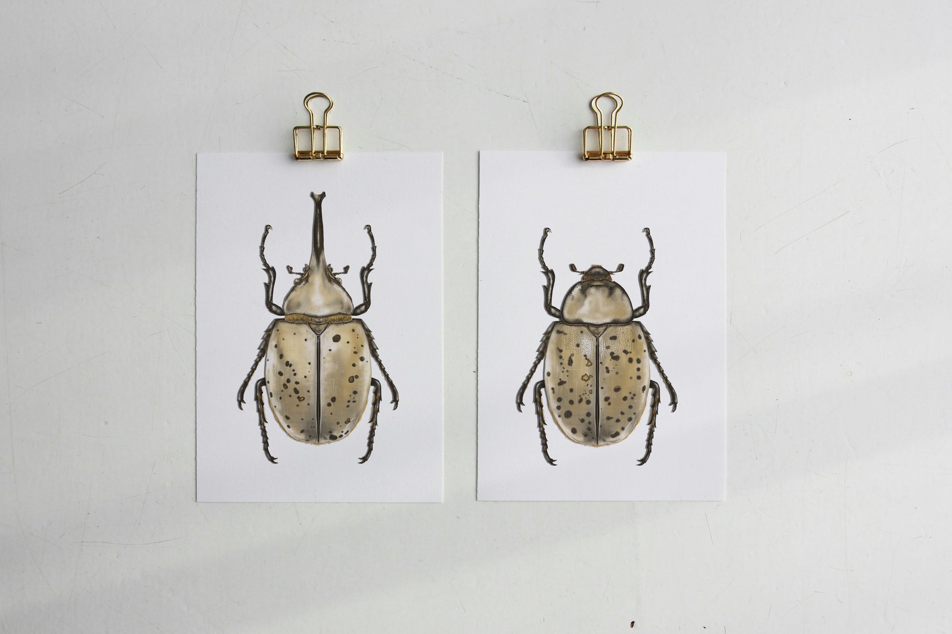 Decora cualquier habitación de tu casa con este pack de láminas de arte científico de escarabajos Unicornio, realizadas por Fátima Ackerson.